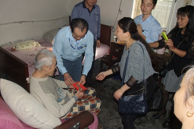 重陽節(jié)當天,鎮(zhèn)黨委朱書記、社區(qū)委員和上海大寶管理部簡侑仕經(jīng)理、工程部林心旺顧問等一同前往當?shù)鼐蠢显海赐繂柫岁懡ㄓⅰ㈥惒竦?位孤寡老人。他們當中,年齡最大的近90歲高齡,最小的也有70多歲,因為無兒無女無所依靠,這些老人生活較為清苦,他們需要社會給予更多的關愛。