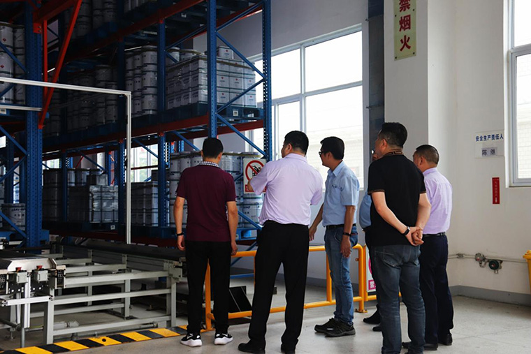 在鄭總的陪同下,成都商會一行先后參觀了形象展示區、自動化立體倉庫、生產車間、安全消防、油槽區、污水處理池設備、RTO治理設備等,接待人員詳細的介紹了各區域的運作情況。