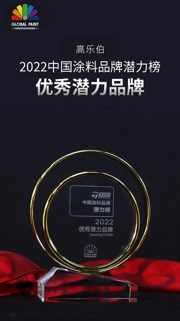 歷經層層評審,高樂伯憑借著過硬的品牌實力和優(yōu)秀的產品質量,從眾多涂料品牌中脫穎而出,被評為“2022優(yōu)秀潛力品牌”!