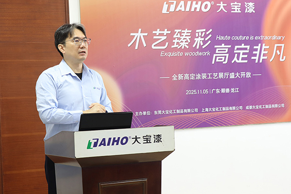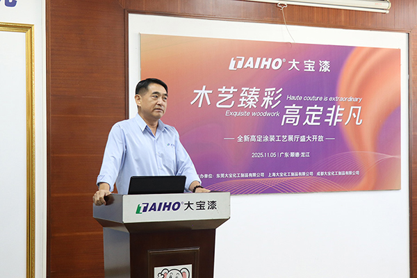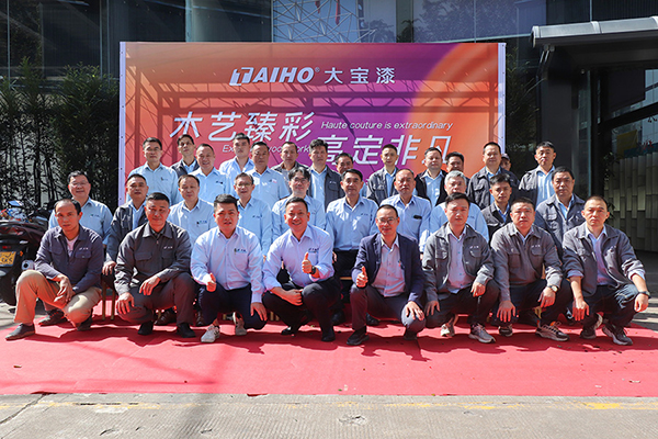 11月5日,大寶漆順德·龍江全新高定涂裝工藝展廳盛大啟幕?;顒?dòng)以“木藝臻彩 高定非凡”為主題,大寶化工直銷事業(yè)部總經(jīng)理張正賢、業(yè)務(wù)一部副總經(jīng)理周志鴻、業(yè)務(wù)一部營銷總監(jiān)葉小兵以及順德辦全體業(yè)務(wù)與工程服務(wù)人員等,共同見證了這一服務(wù)升級(jí)的新里程碑。