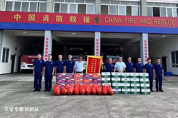 在“八一”建軍節來臨之際,成都大寶化工制品有限公司管理部副理賴俊良、副課長段亞波和楊路等一行人,帶著誠摯的問候和深深的敬意,來到邛崍市消防救援大隊及羊安專職消防隊,慰問奮戰在火海前線、保衛一方平安的消防官兵,為他們送上夏日的清涼。