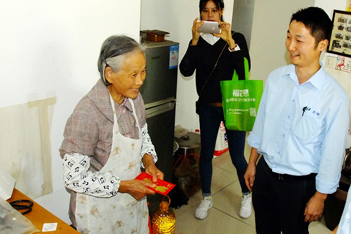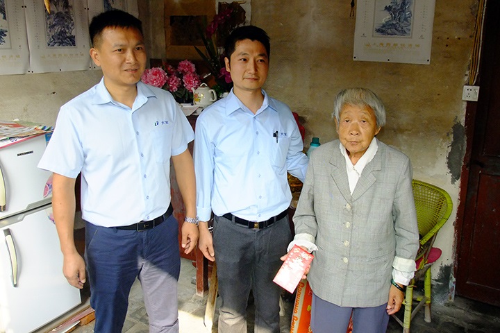 10月17日,農(nóng)歷九月初九,重陽節(jié)。因“九九”與“久久”同音,有長久長壽的含意,所以,重陽節(jié)又是我國的“老人節(jié)”,歷來有推行敬老崇孝的活動。讓“尊老愛老”的中華傳統(tǒng)美德不斷得到傳承、發(fā)揚光大,弘揚尊老敬老的社會風氣,上海大寶化工領(lǐng)導走進重固鎮(zhèn)當?shù)鼐蠢显海瑸槔先藗兯腿チ斯?jié)日禮物和慰問金,送去了溫暖,并向他們致以節(jié)日的祝福。