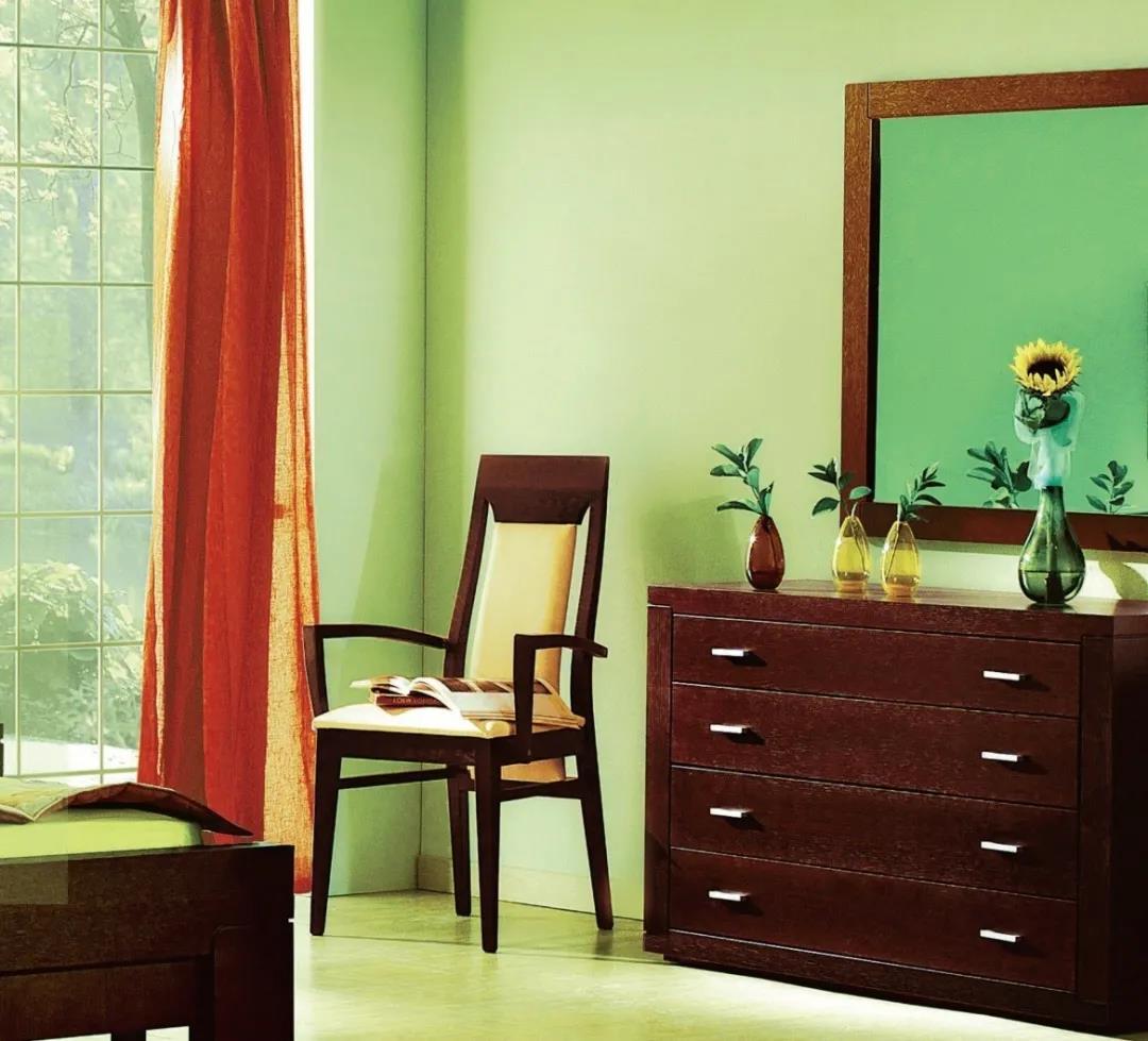 中綠色搭配深色木制家具,有效調節了整個居室環境的平衡感,讓整個房間煥發出生機活力。