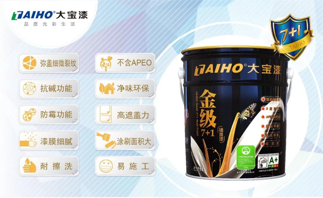 大寶金級7+1墻面漆,甄選優質原材料結合大寶最新科技研發而成,擁有高效抗甲醛功能、甲醛凈化率高達80%以上;同時,它還通過了美國綠色衛士室內空氣質量金級和法國室內空氣檢測A+級的雙認證,TVOC含量超低,防霉性優異,功能卓越。
