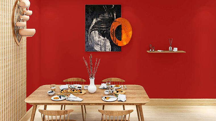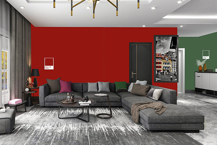 在考慮色彩配置時,若無法接受飽和度太高的紅,非常推薦使用大寶R8855-40D故宮紅,屬于低彩度深紅色系,除了與上述顏色搭配外,更適合放在空間某處作為焦點(diǎn),例如玄關(guān)、電視背景墻..等,讓人不自覺的往此處吸引,在視覺上擁有亮點(diǎn)帶出時尚摩登感。