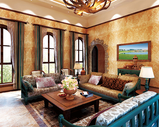 美式田園風格又稱為美式鄉村風格,屬于自然風格的一支,倡導“回歸自然”,在室內環境中力求表現悠閑、舒暢、自然的田園生活情趣,也常運用天然木、石、藤、竹等材質質樸的紋理。巧于設置室內綠化,創造自然、簡樸、高雅的氛圍。